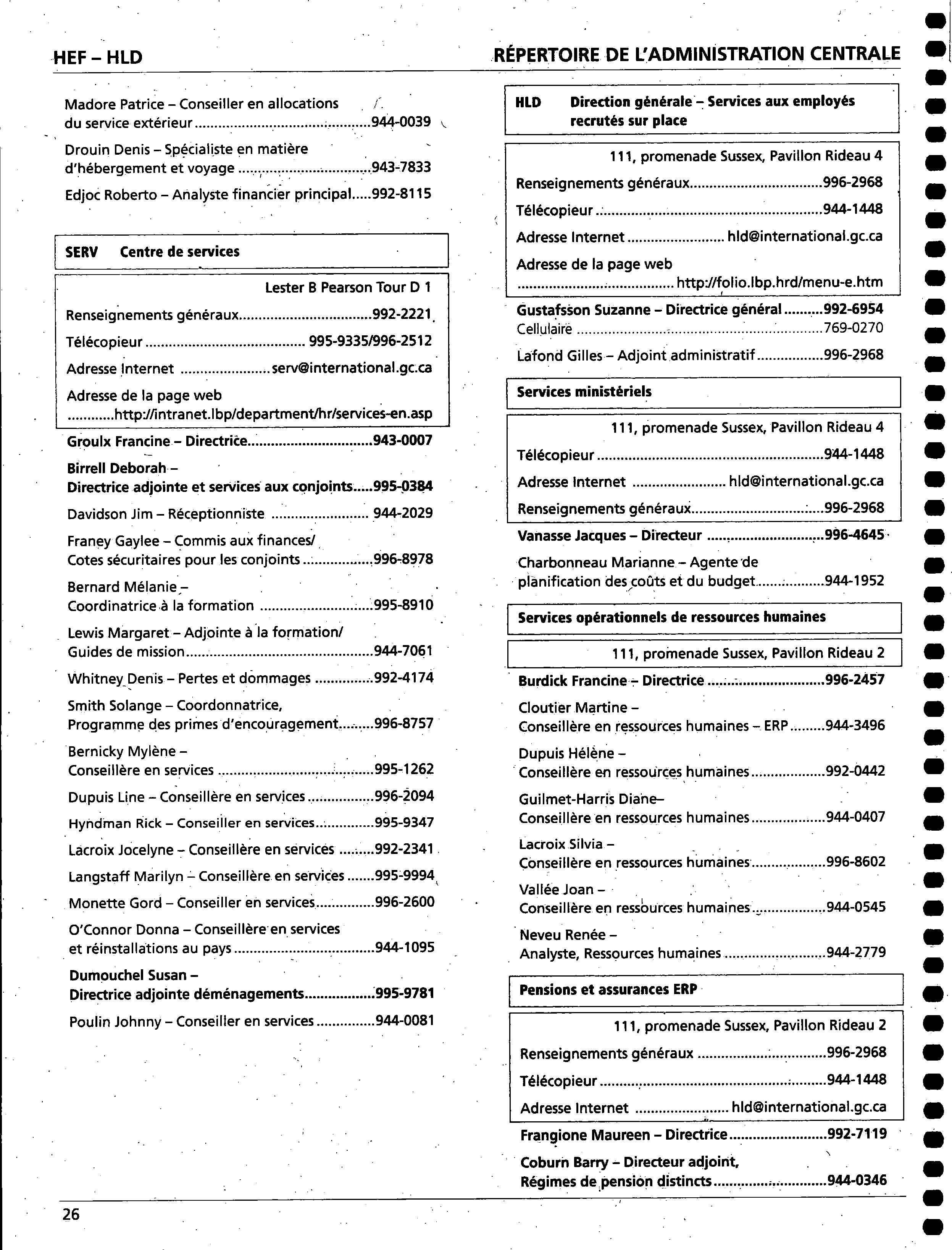 Headquarters directory / Foreign Affairs and International Trade Canada. Déc. 2006