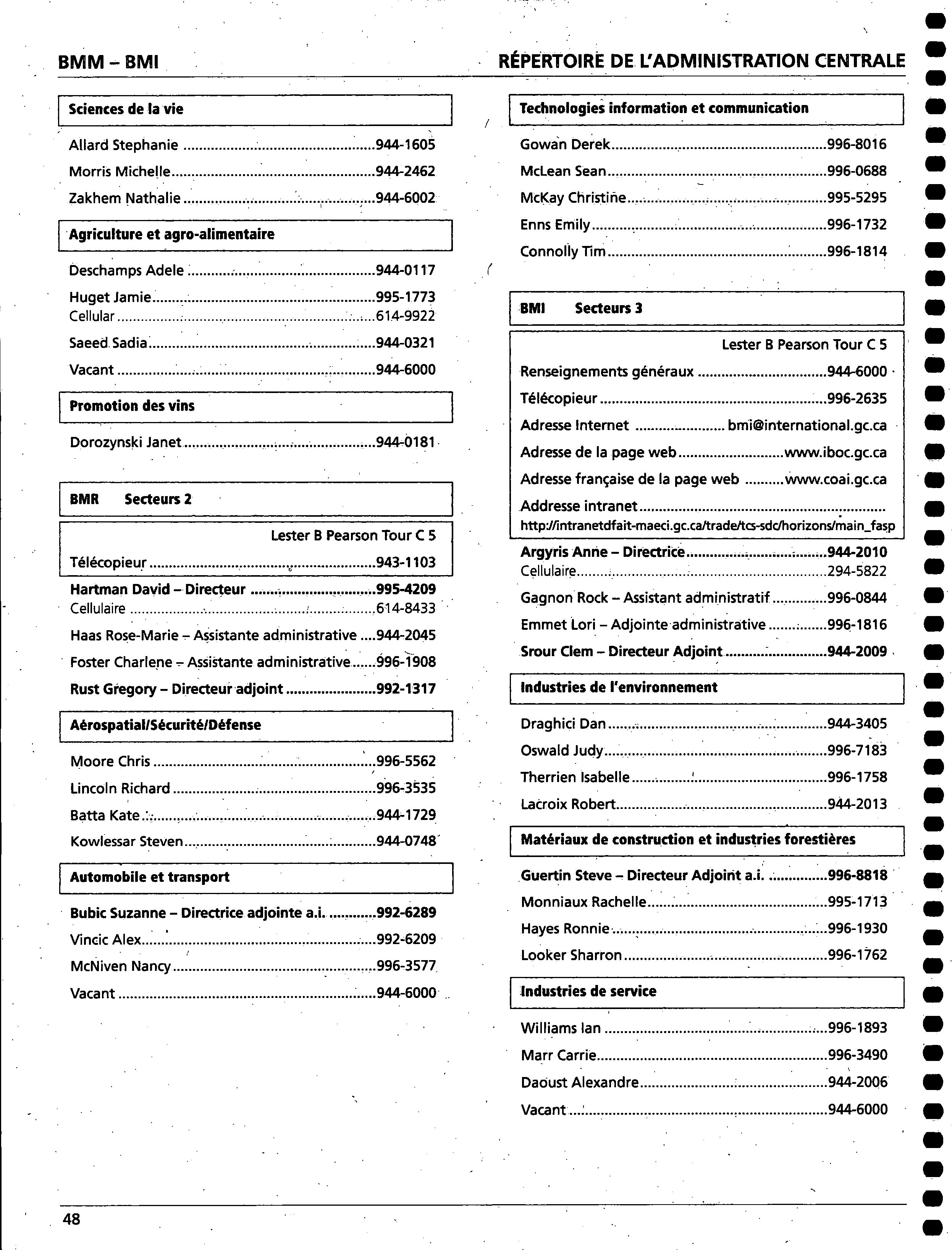 Headquarters directory / Foreign Affairs and International Trade Canada. Déc. 2006