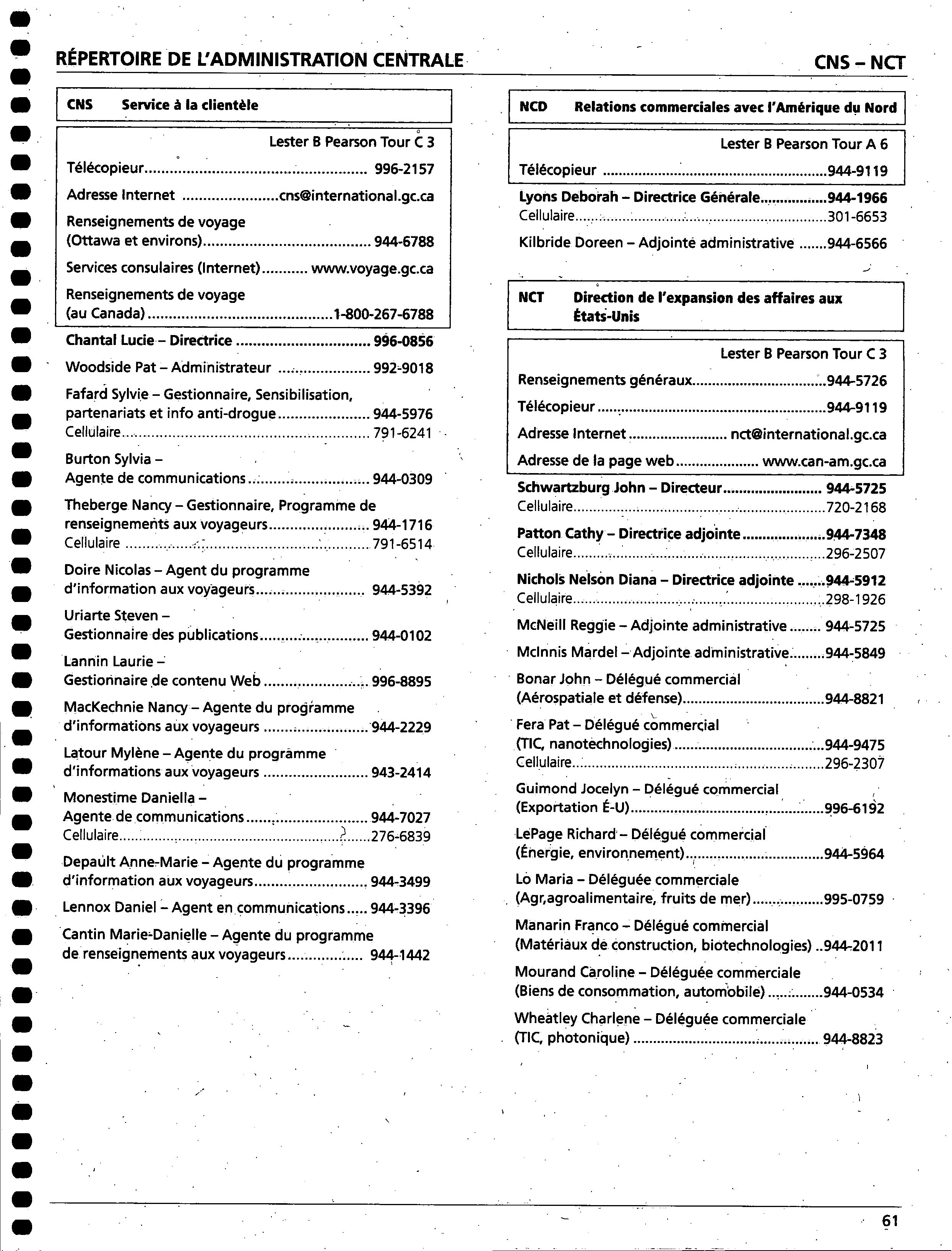 Headquarters directory / Foreign Affairs and International Trade Canada. Déc. 2006