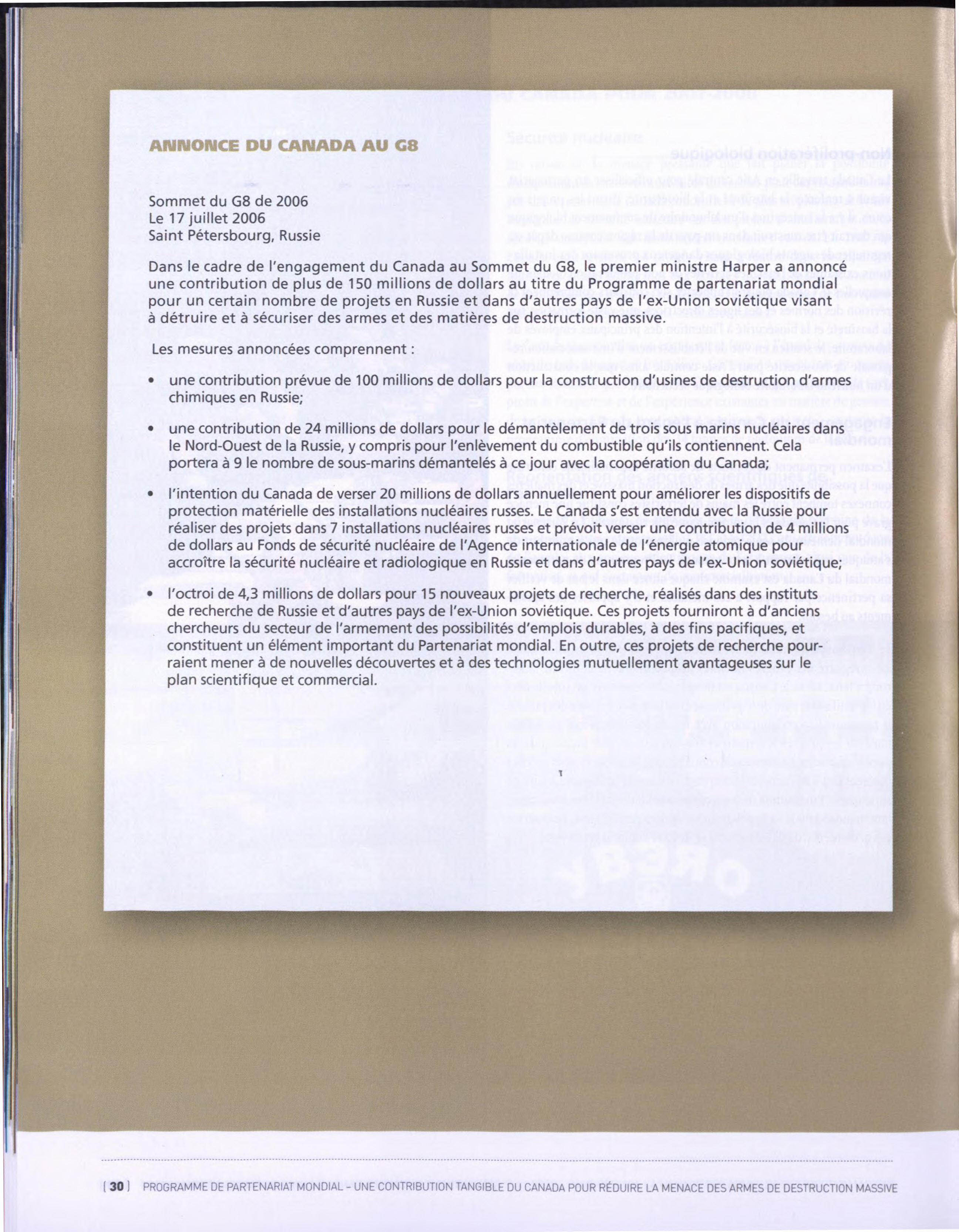 Titre de la page de titre additionnelle: Global Partnership Program : a tangible Canadian contribution to reducing the threat of weapons of mass destruction.