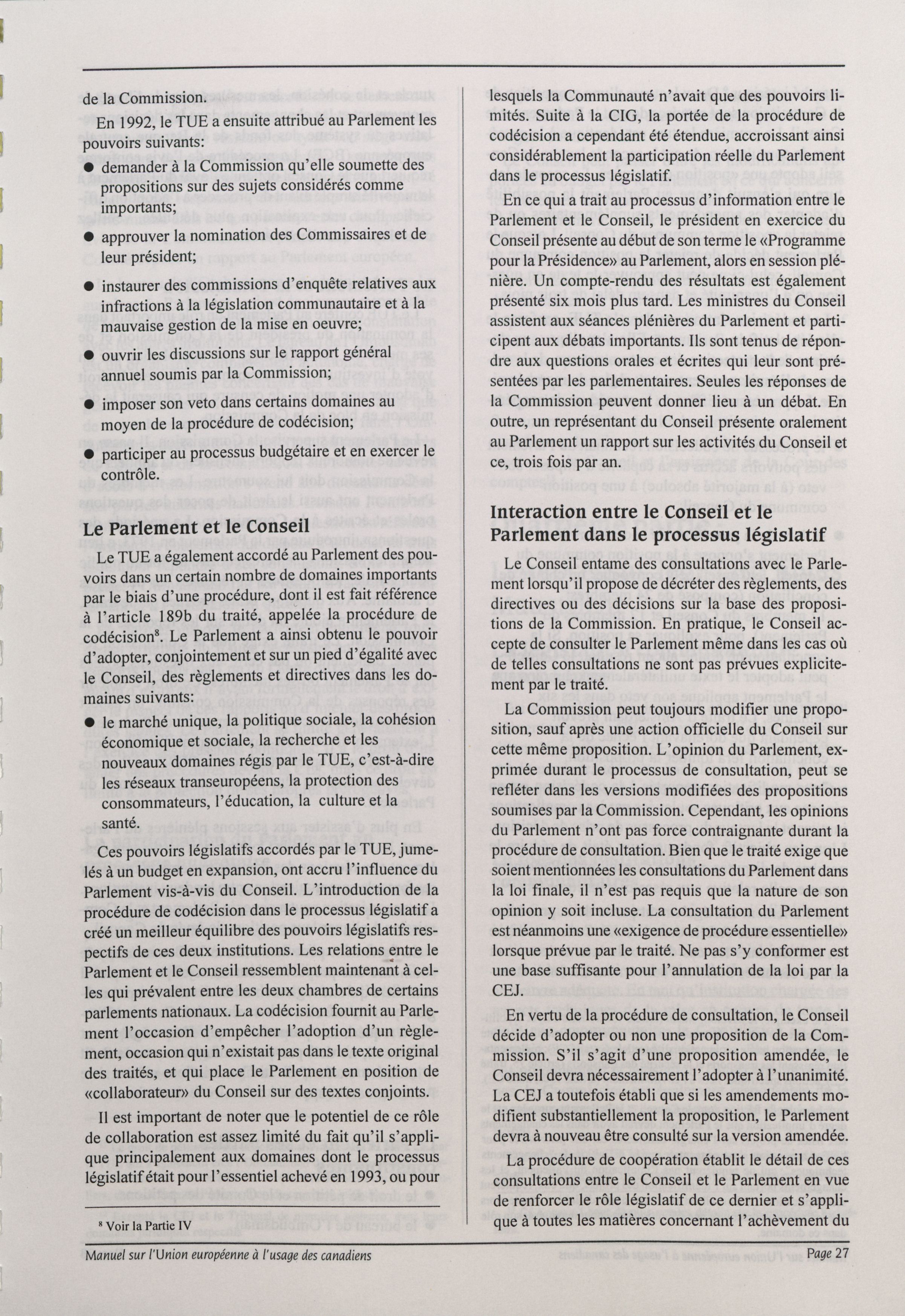 Manuel sur l'Union européenne à l'usage des canadiens.