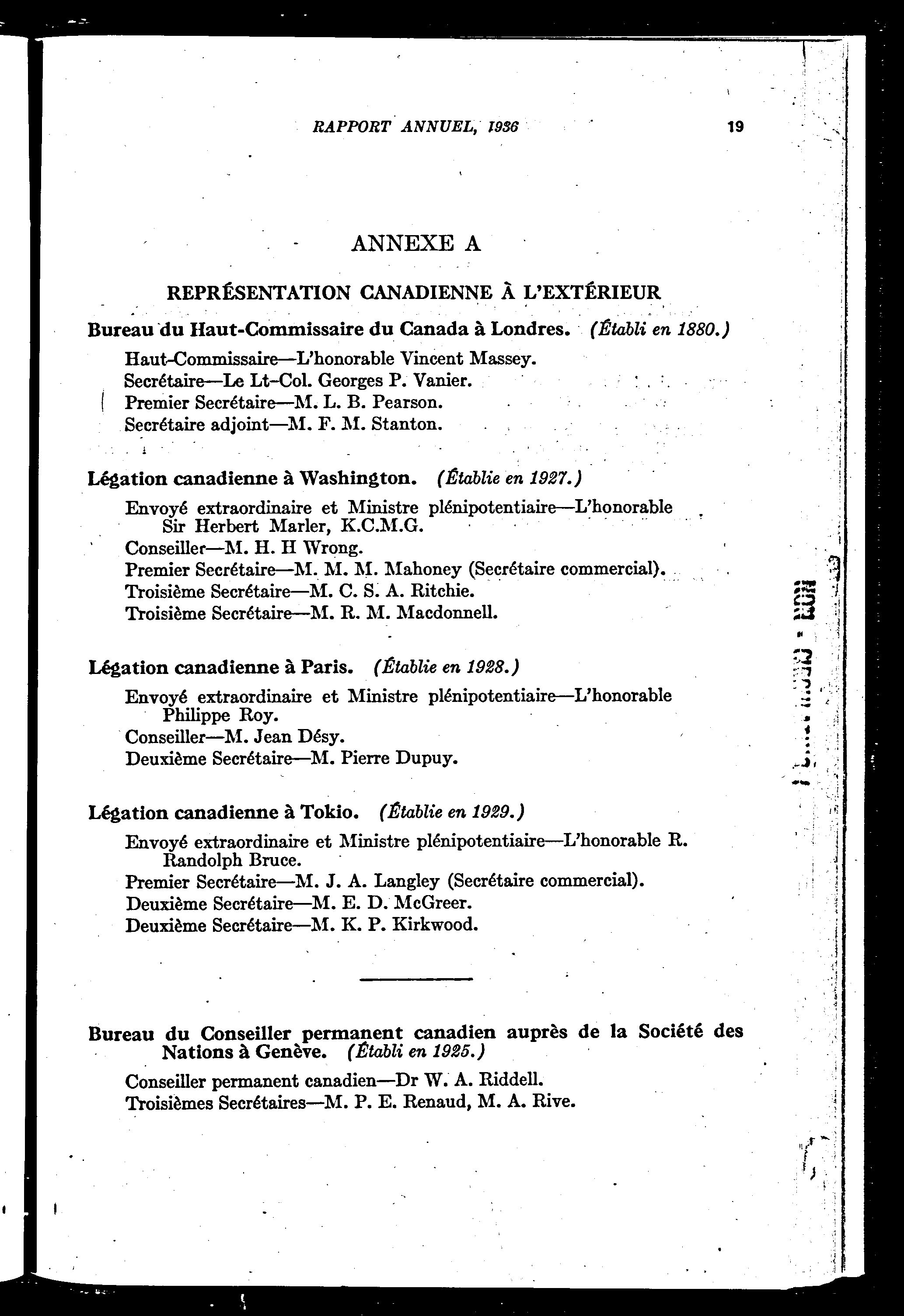 Rapport du Secrétaire d'état des affaires extérieures pour l'exercise terminé le ... 1930