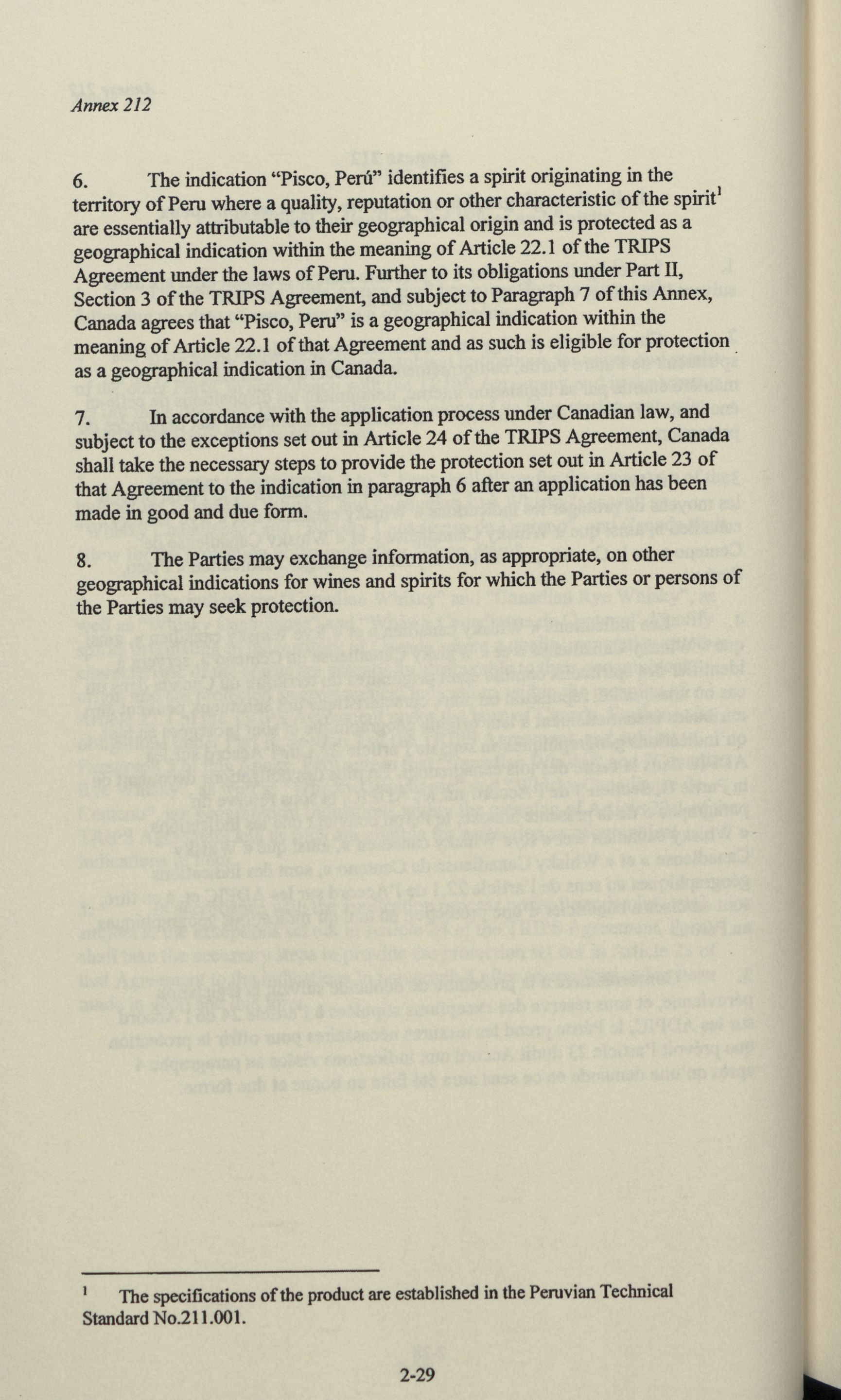 Free trade agreement between Canada and the Republic of Peru.