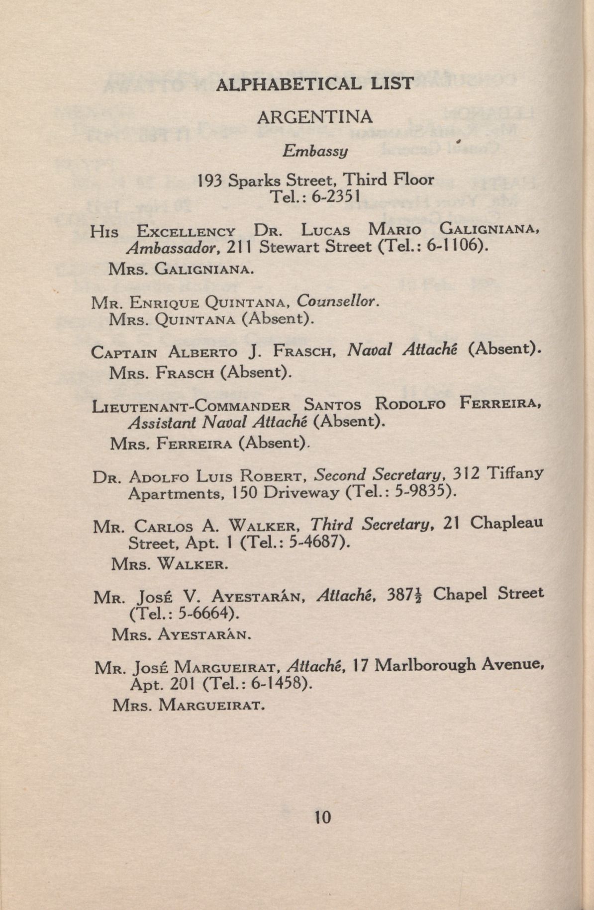 Le corps diplomatique et les représentants consulaires à Ottawa 1954-11