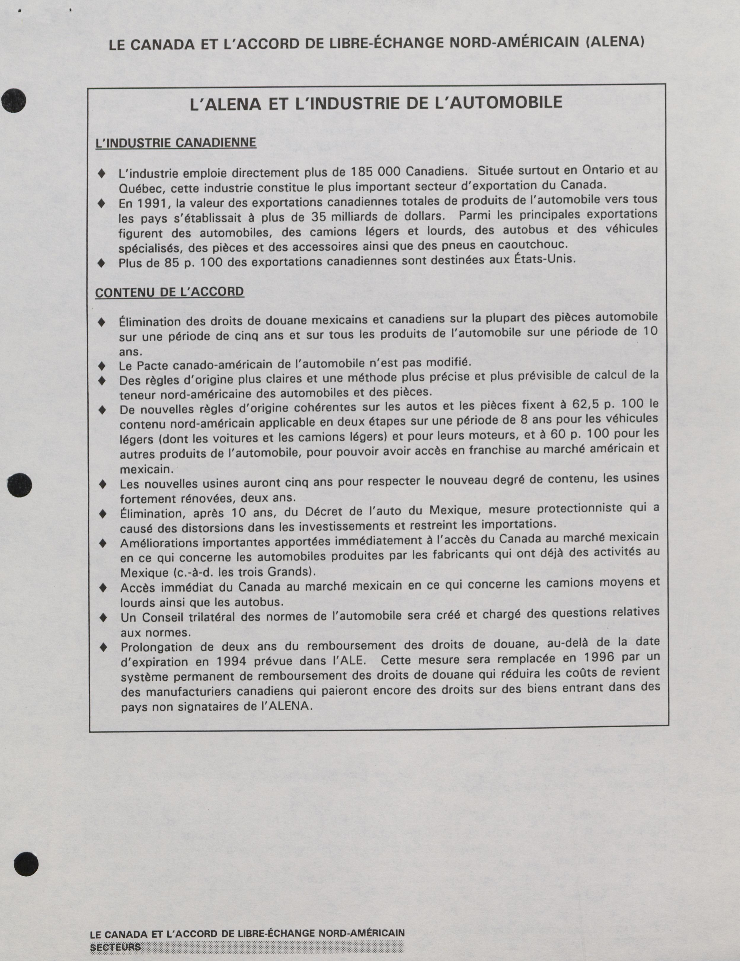 Titre courant : Le Canada et l'Accord de libre-échange nord-américain (ALÉNA)