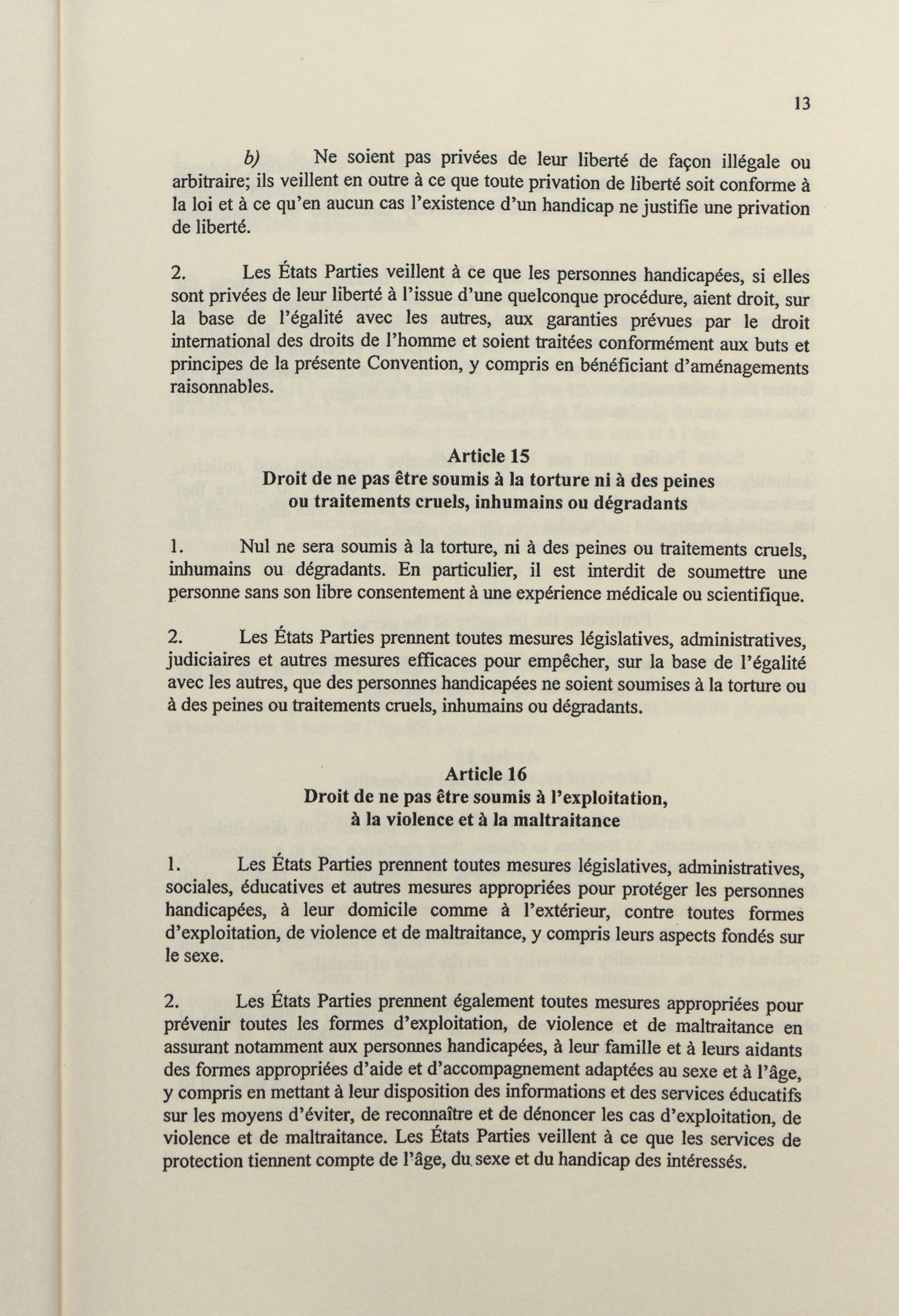 Droits de la personne : Convention relative aux droits des personnes handicapées.
