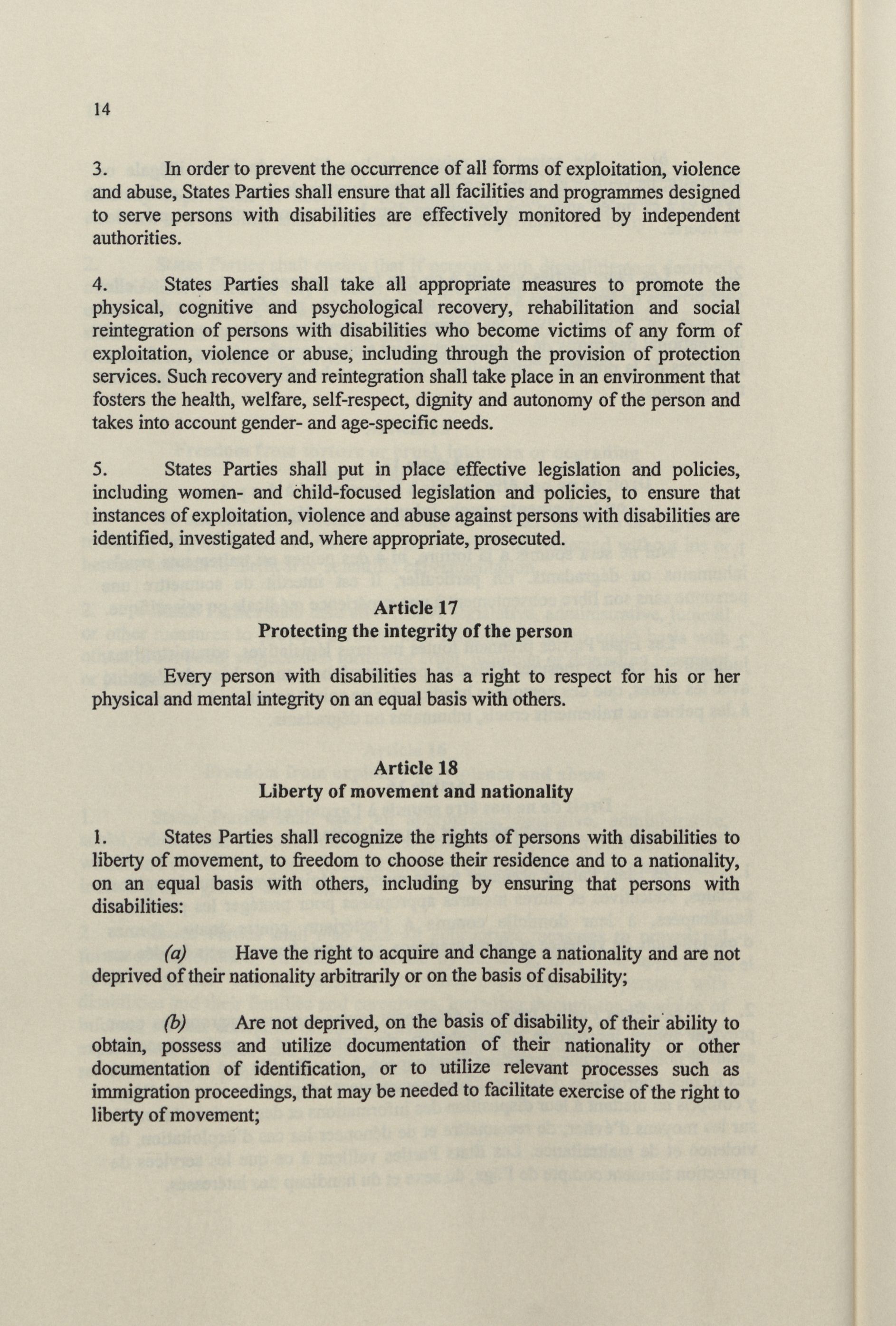 Droits de la personne : Convention relative aux droits des personnes handicapées.