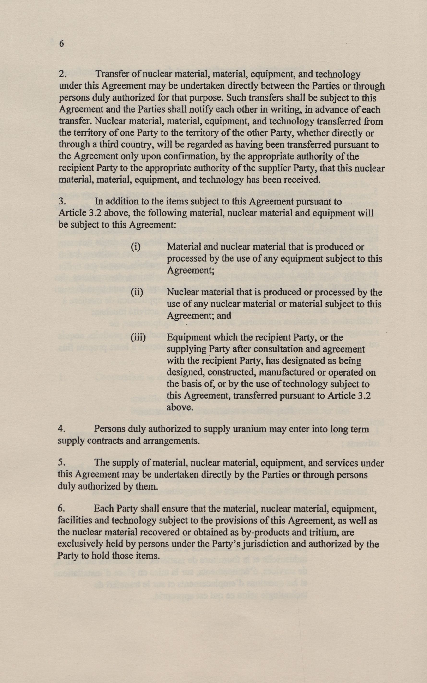 Parties to the Agreement for co-operation in peaceful uses of nuclear energy : Government of Canada and the Government of the Republic of India.