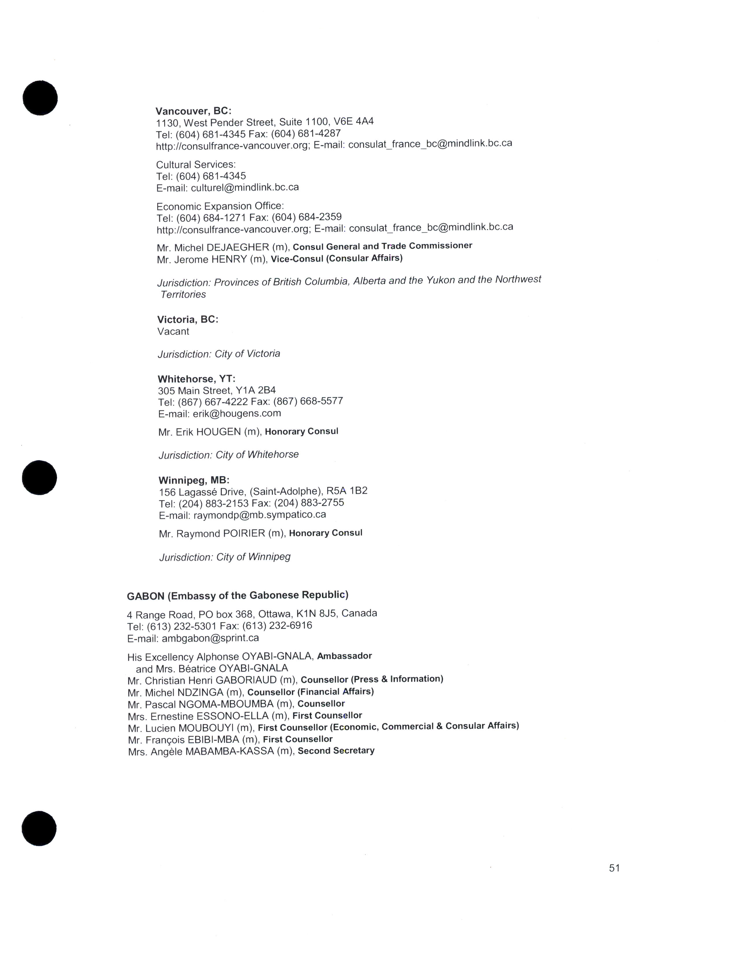 Diplomatic, consular, and other representatives in Canada. -- : September 2002