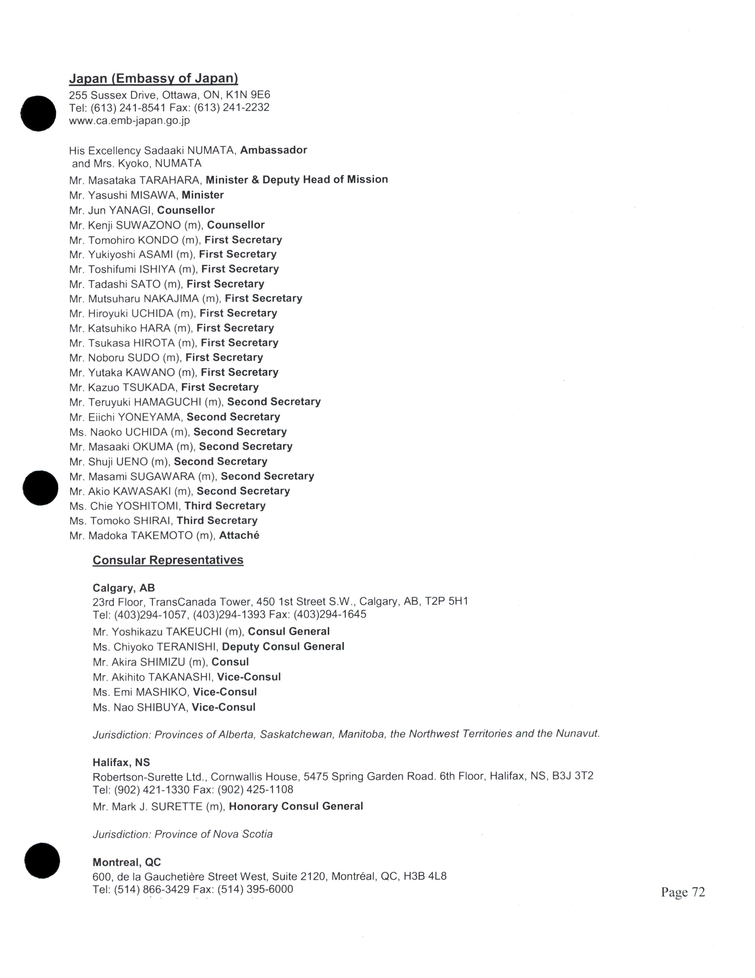 Diplomatic, consular, and other representatives in Canada.