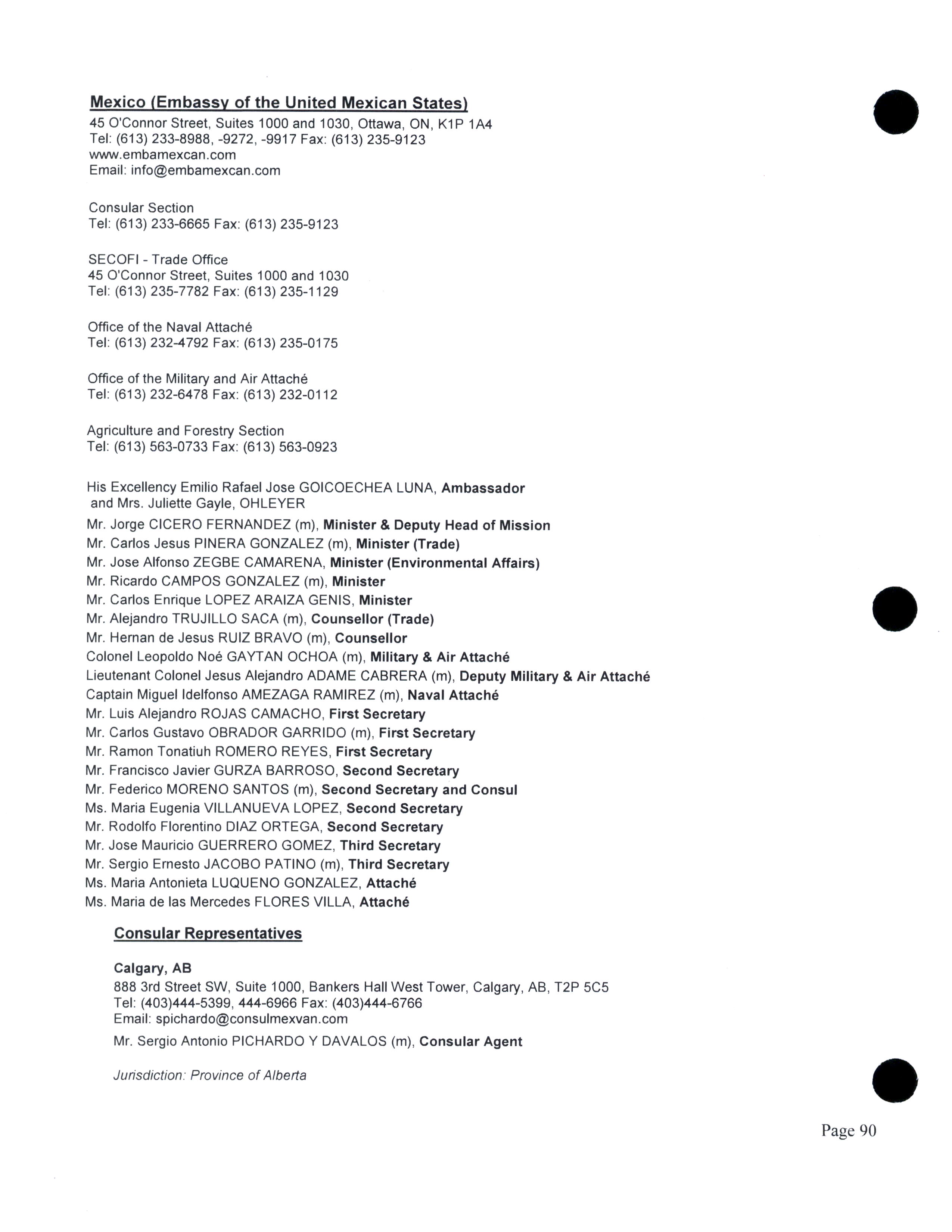 Diplomatic, consular, and other representatives in Canada. -- : November 2007