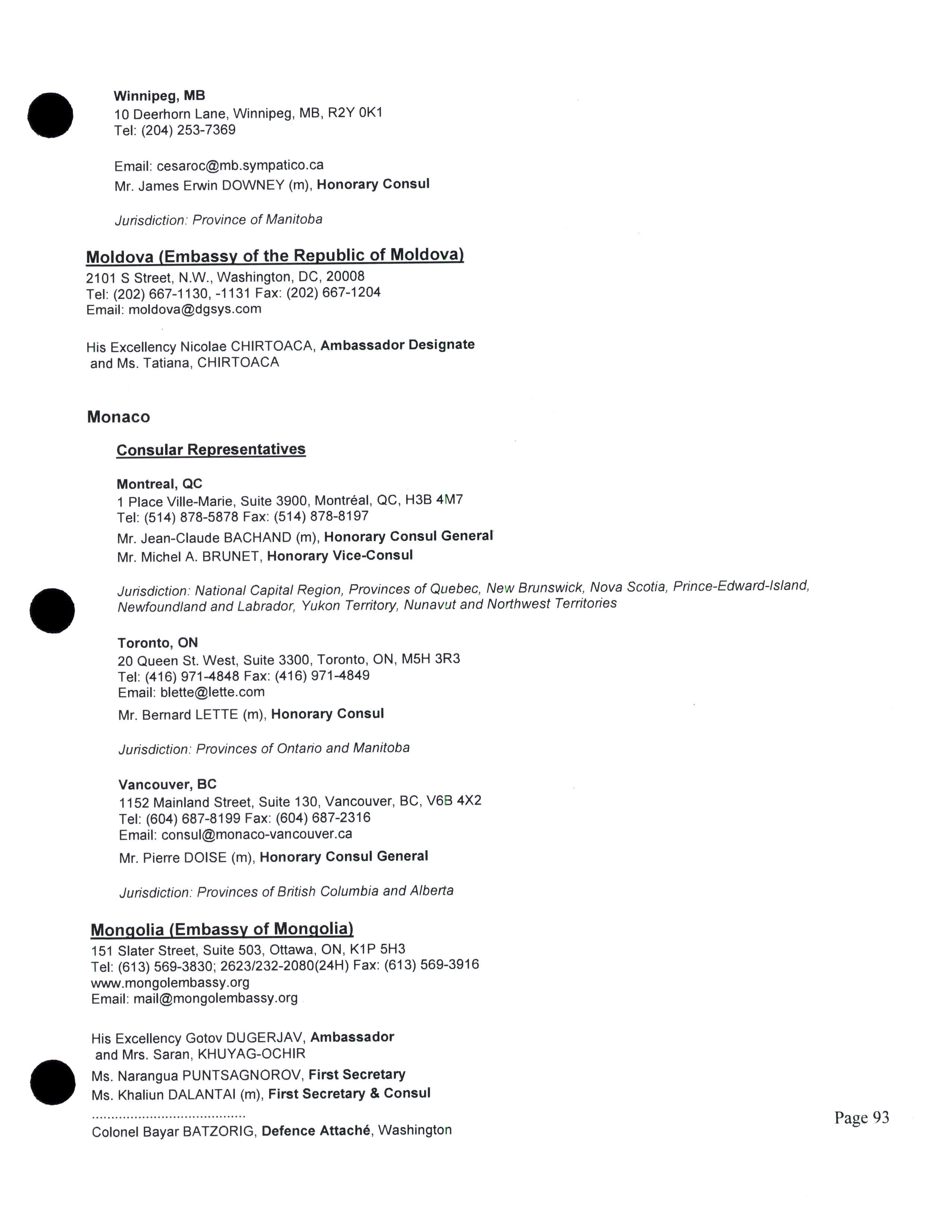 Diplomatic, consular, and other representatives in Canada. -- : November 2007