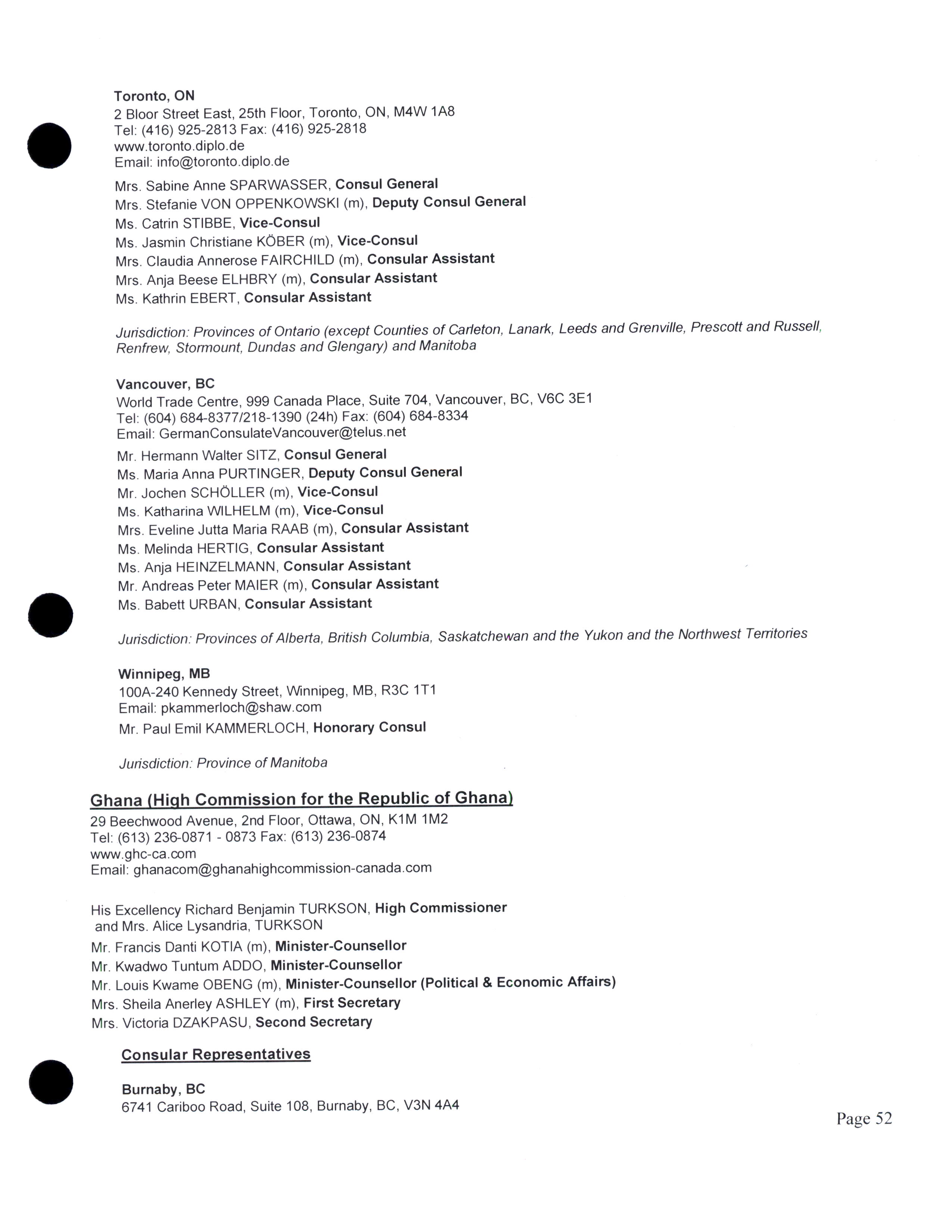 Diplomatic, consular, and other representatives in Canada.
