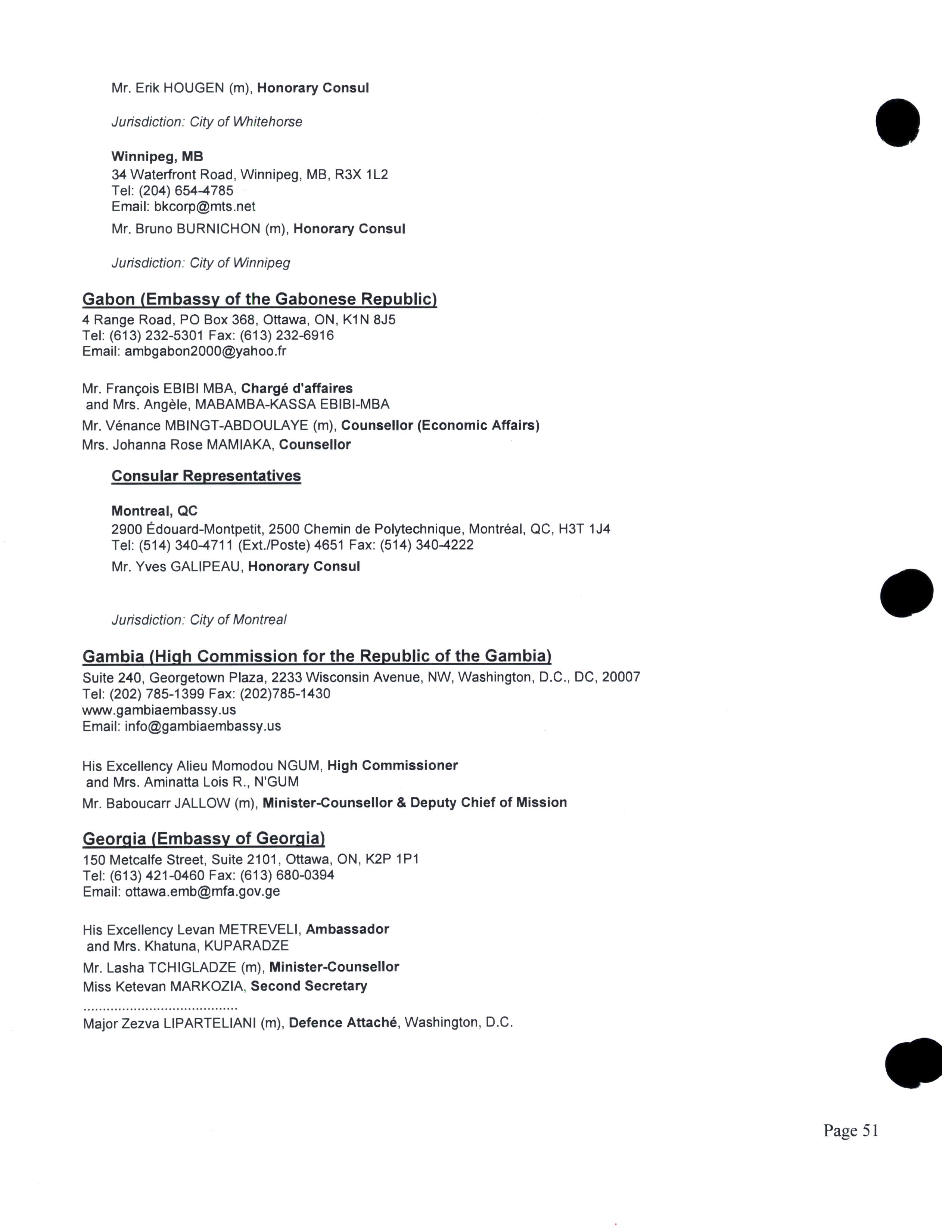 Diplomatic, consular, and other representatives in Canada. -- : May 2012