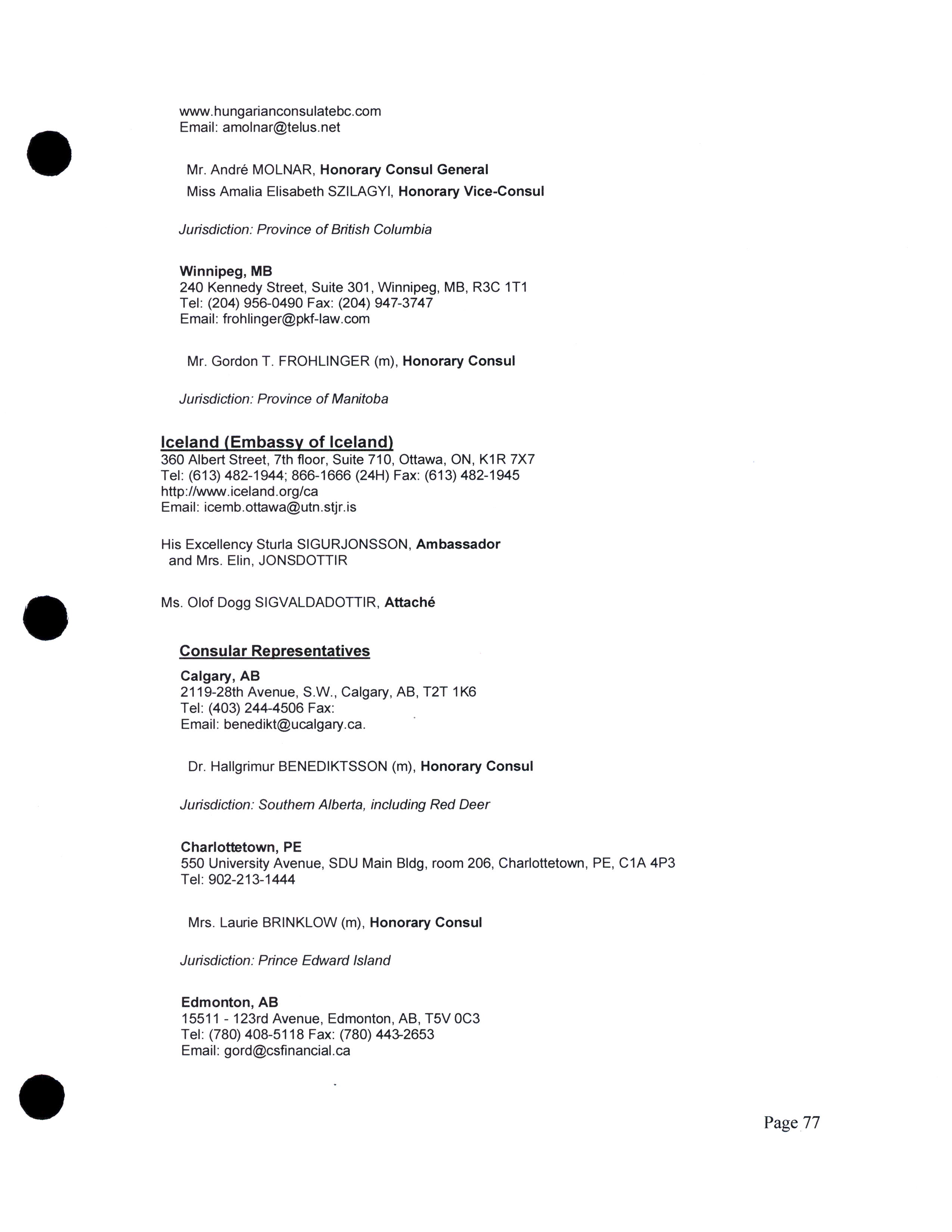 Diplomatic, consular, and other representatives in Canada.