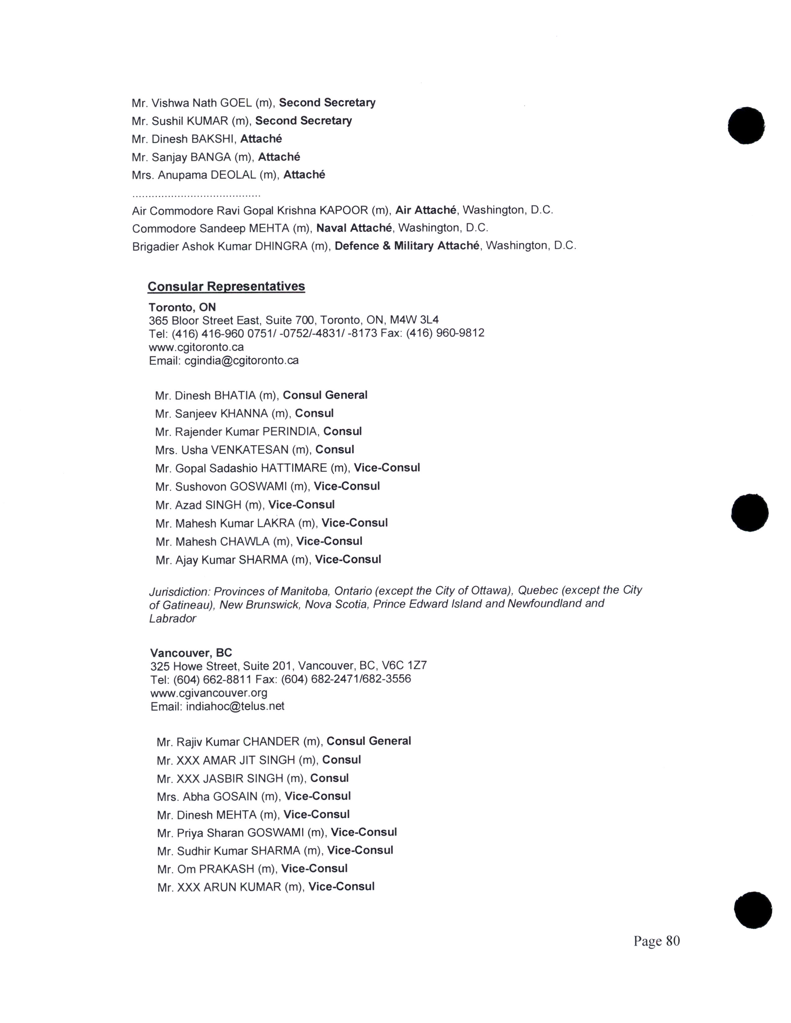 Diplomatic, consular, and other representatives in Canada.