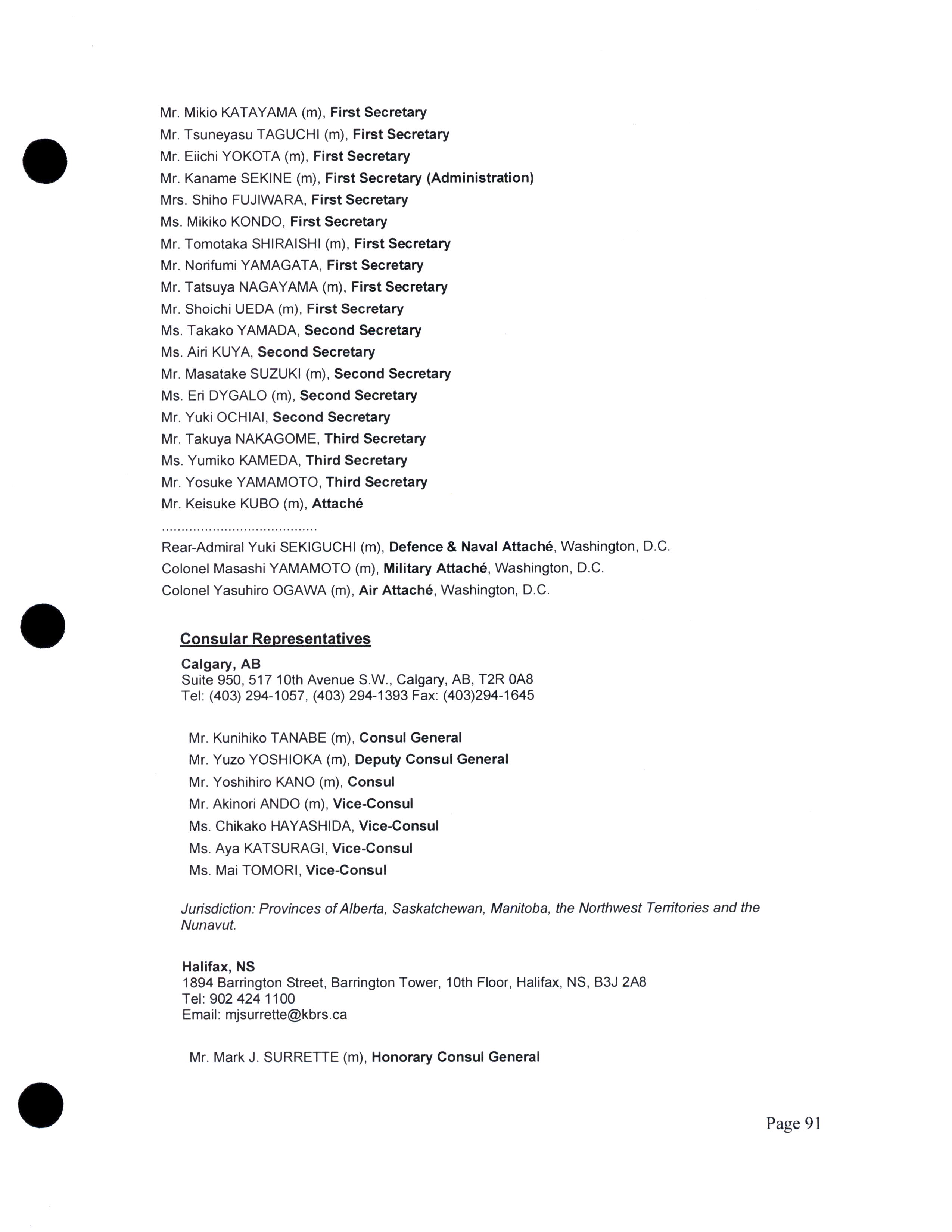 Diplomatic, consular, and other representatives in Canada.