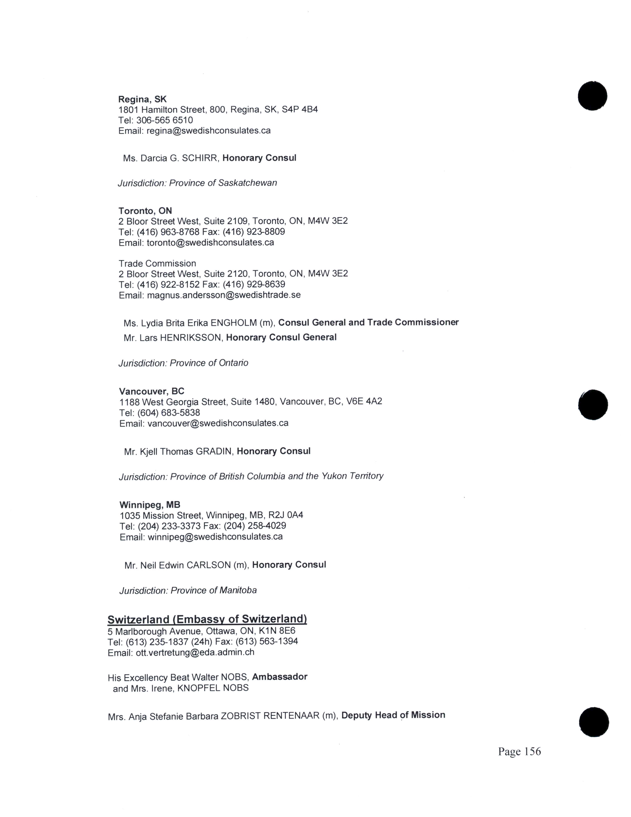 Diplomatic, consular, and other representatives in Canada.