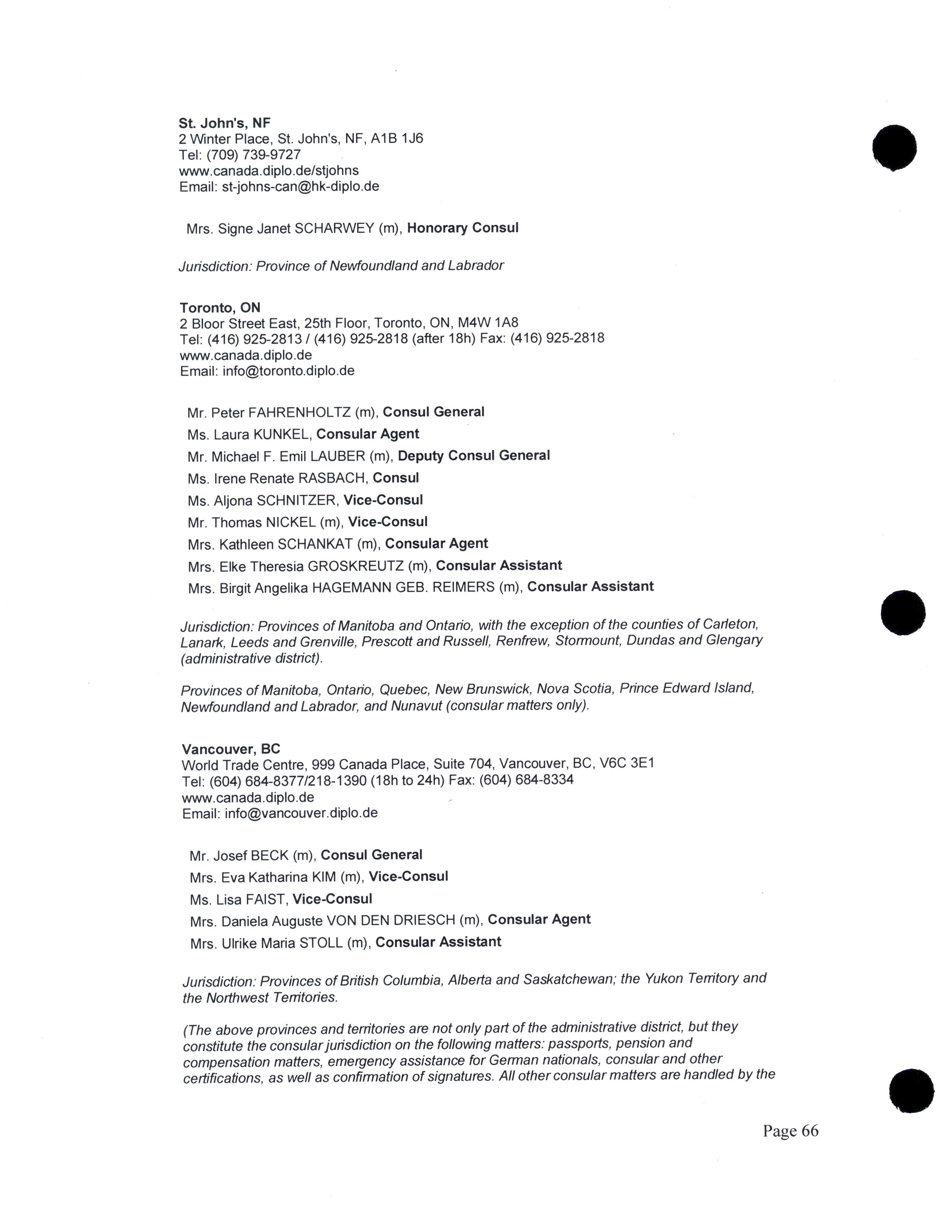 Diplomatic, consular, and other representatives in Canada.
