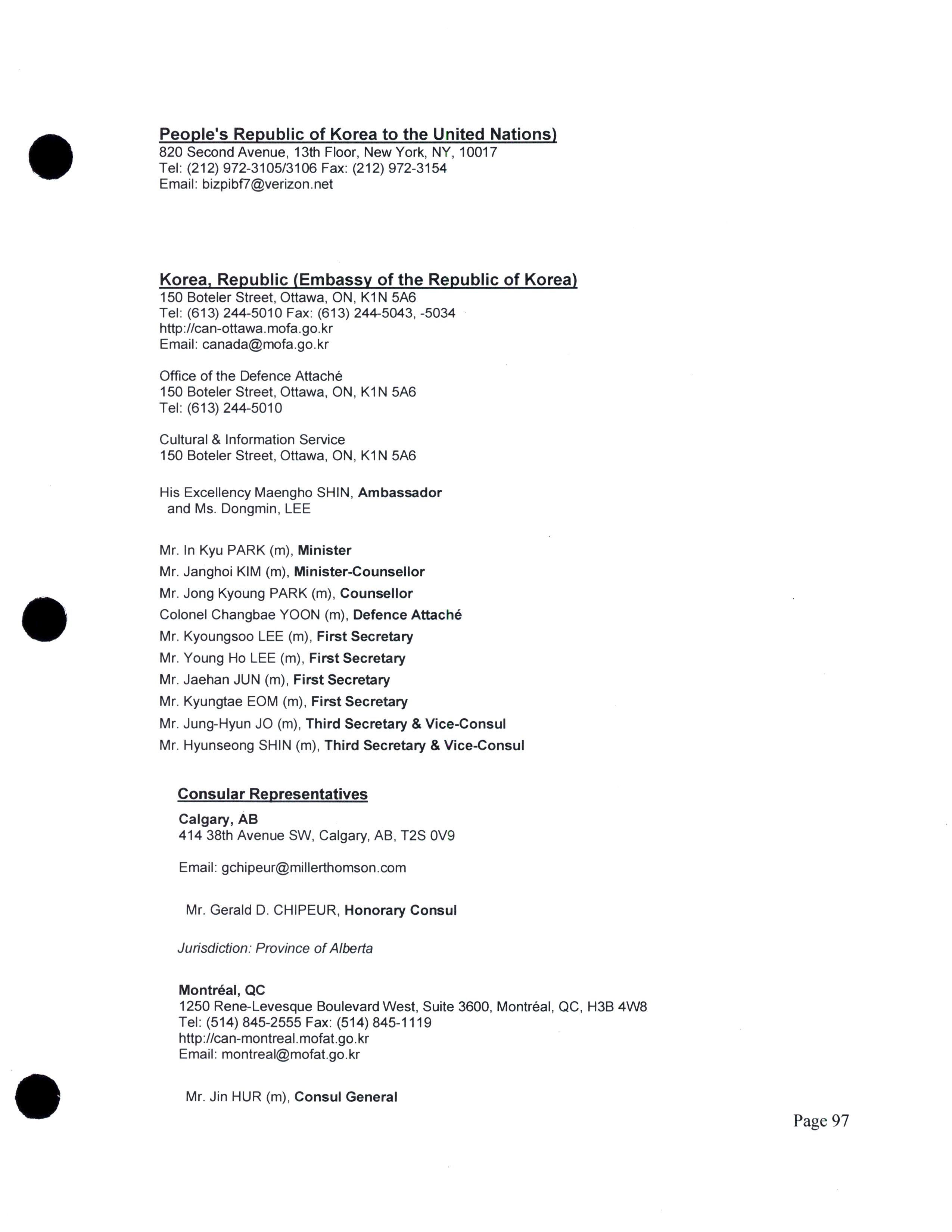 Diplomatic, consular, and other representatives in Canada.