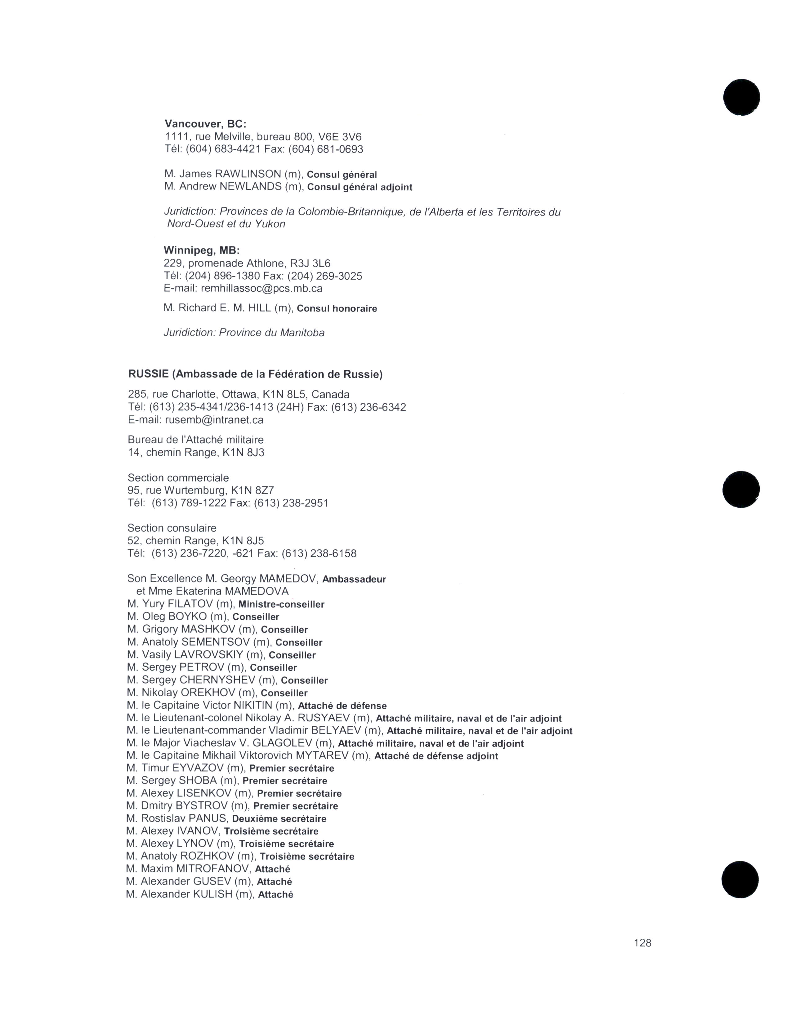 Représentants diplomatiques, consulaires, et autres au Canada. -- : avril 2004