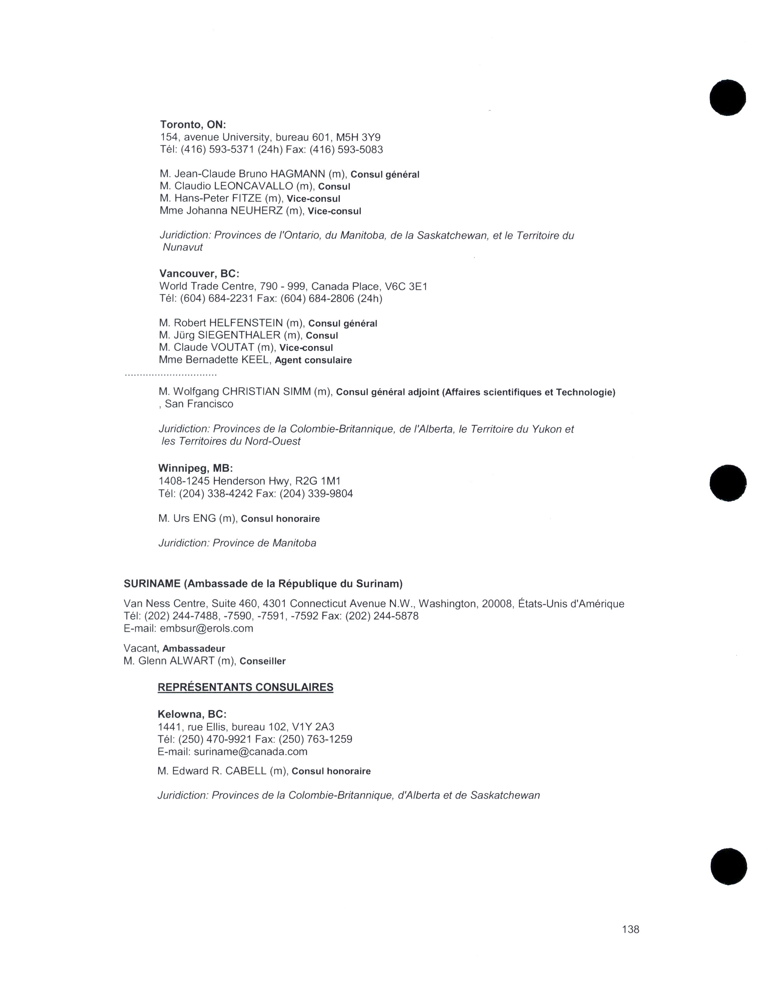 Représentants diplomatiques, consulaires, et autres au Canada. -- : avril 2004