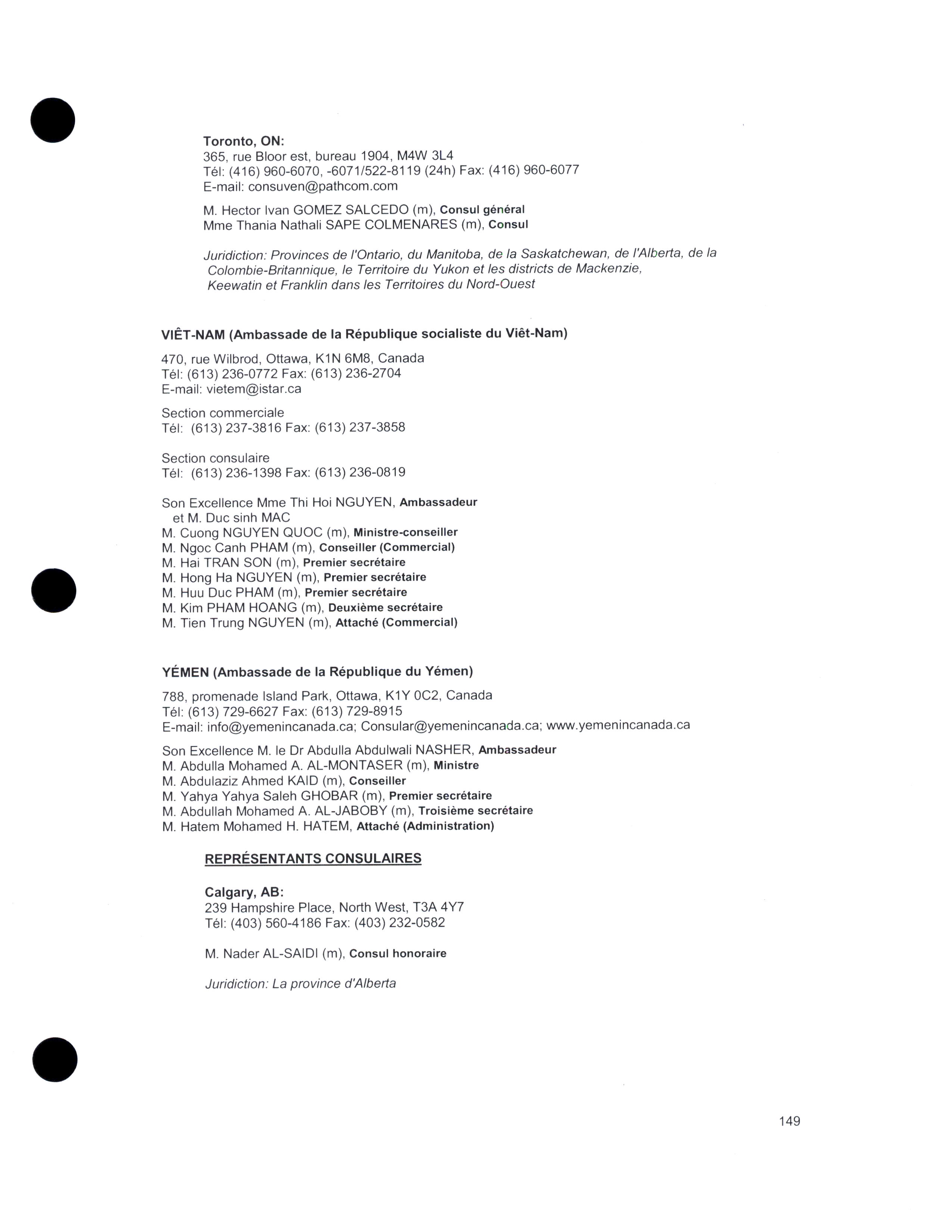 Représentants diplomatiques, consulaires, et autres au Canada. -- : avril 2004