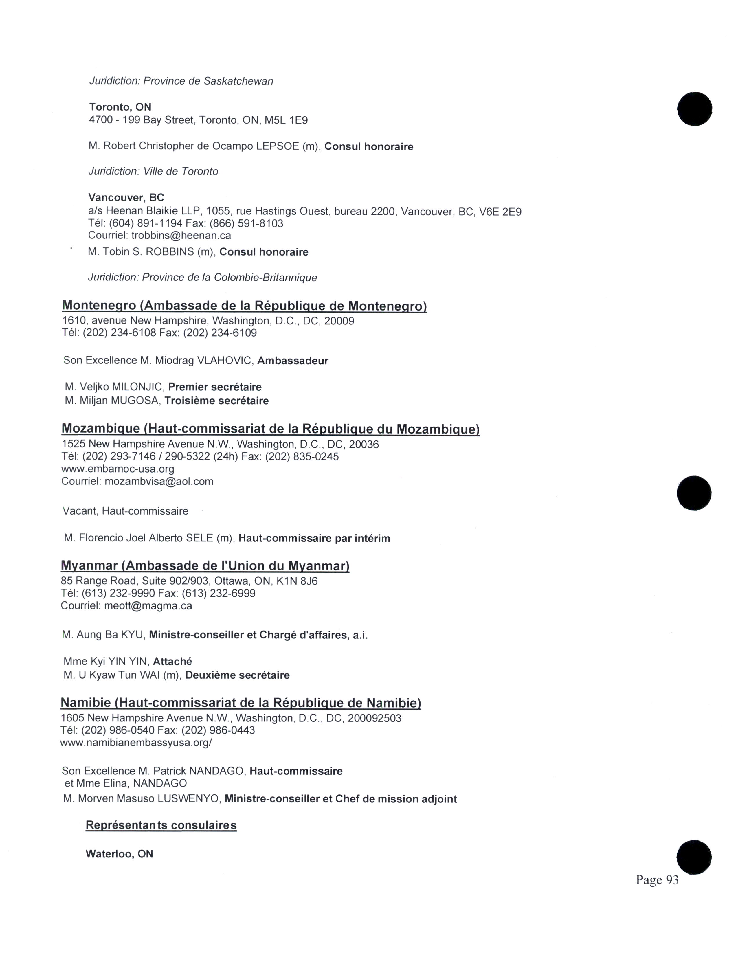 Représentants diplomatiques, consulaires, et autres au Canada. -- : octobre 2009