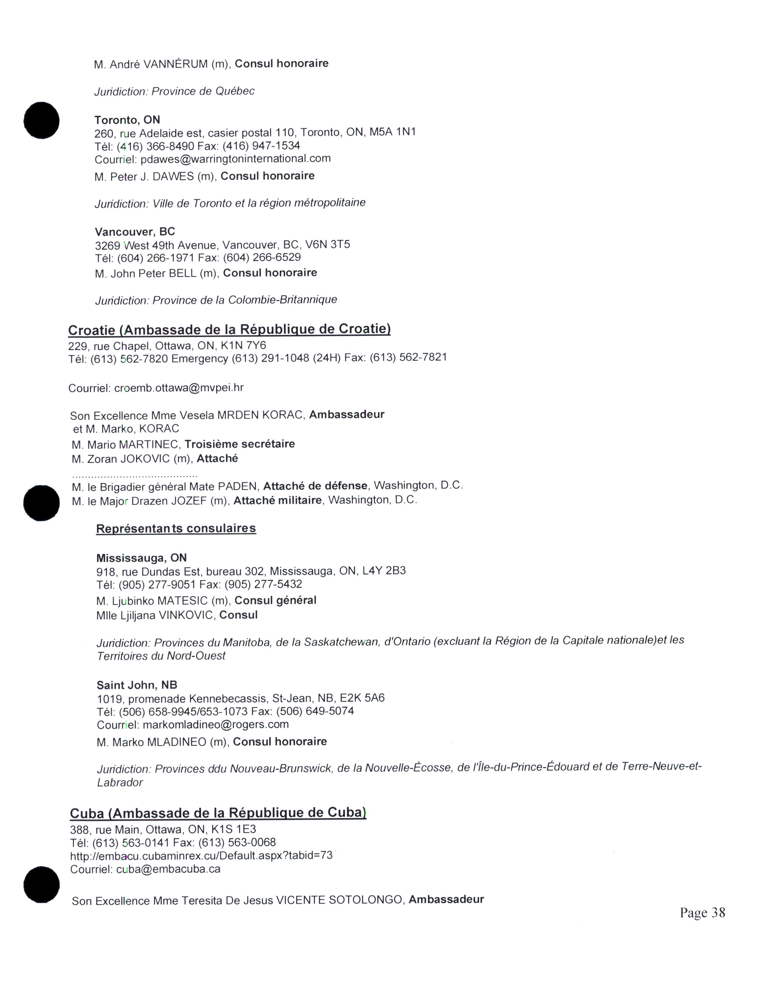 Représentants diplomatiques, consulaires, et autres au Canada. -- : août 2010