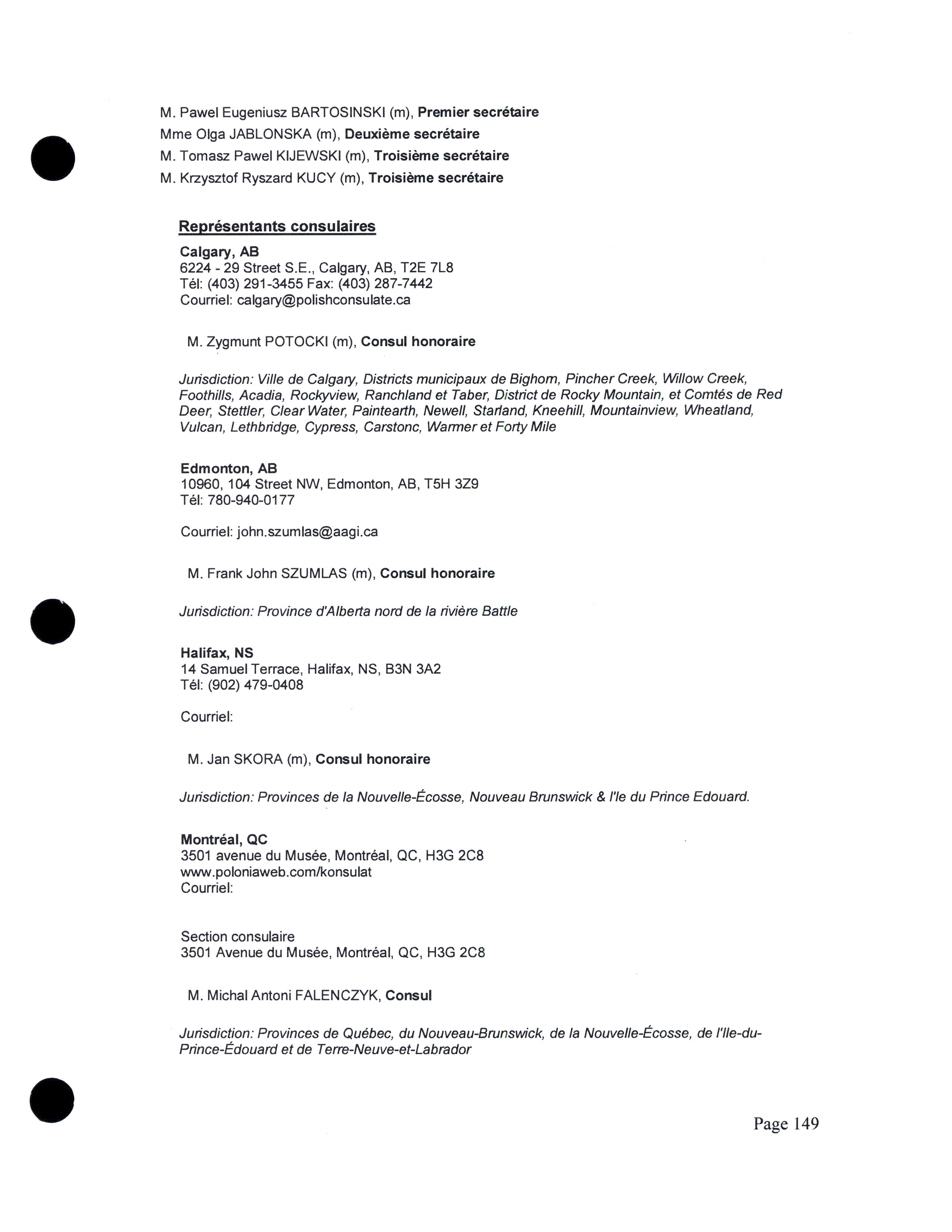 Représentants diplomatiques, consularies, et autres au Canada.